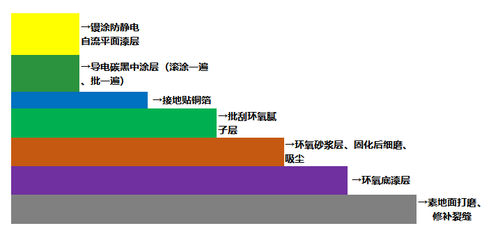 | 7 | 防靜電涂層 | 面涂約0.75kg-0.8kg/m2 | 刮涂均勻 |